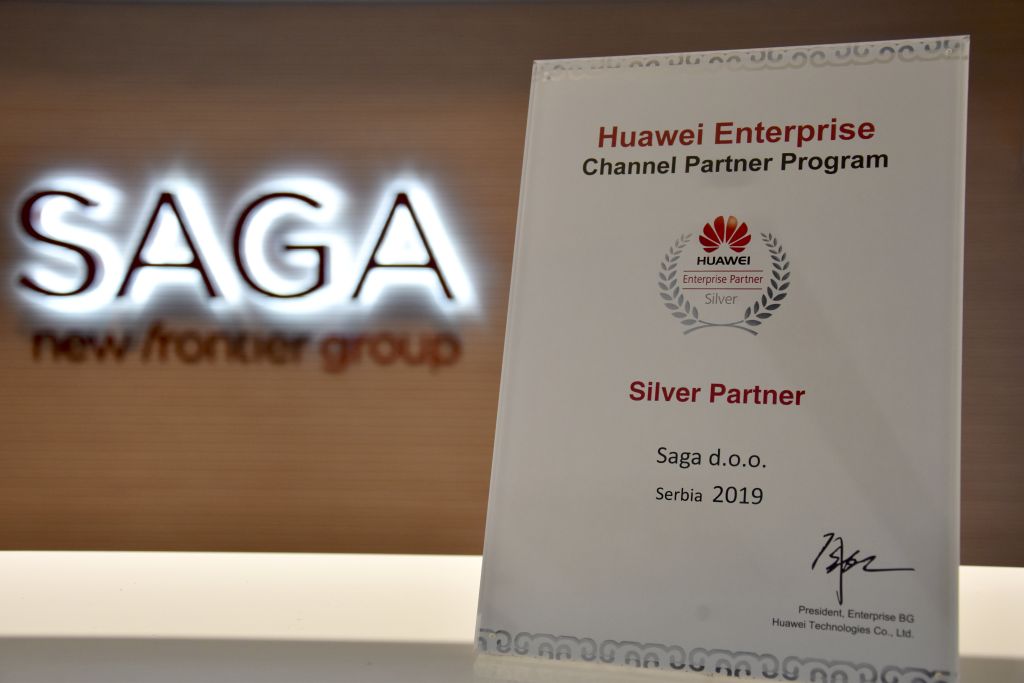 Kompanija Huawei kroz posvećenost izgradnji snažnog globalnog partnerskog ekosistema podržava dugoročni rast poslovanja i maksimizaciju vrednosti ICT rešenja koja zajednički isporučuju korisnicima. Sa tim ciljem zajedno sa partnerima radi na svim aspektima poslovanja, uključujući istraživanje i razvoj, proizvodnju, distribuciju, isporuku, promociju i servis.Kao Huawei Certified Silver Partner Saga d.o.o. Beograd nastupa kao istaknuti partner Huawei Enterprise Business Group na regionalnom tržištu, učestvujući u razvoju platforme za odnose sa klijentima, pružajući podršku za Huawei proizvode i rešenja industrijskim korisnicima i preuzimajući ostale obaveze u smislu ostvarivanja zajedničkih poslovnih ciljeva.Dodatno, Huawei Enterprise Business Group (EBG) kroz sistem servisnih partnera gradi otvoreni, interaktivni ekosistem namenjen pružanju usluga najvišeg nivoa, što Certified Services Partnere čini ključnim članovima ekosistema, od presudne važnosti za strategiju BusinessDriven ICT infrastrukture (BDII).